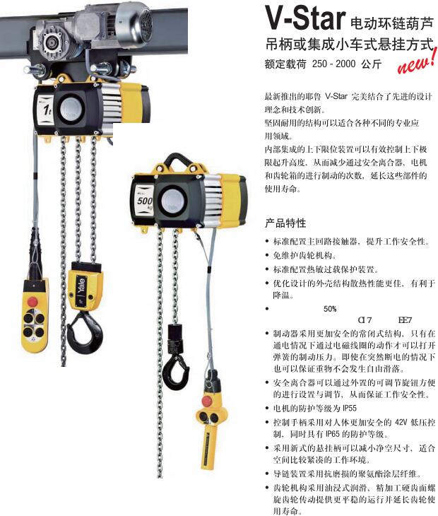環(huán)鏈電動葫蘆結(jié)構(gòu)特點:電動葫蘆產(chǎn)品結(jié)構(gòu):機體選用高強度拉伸殼體或壓鑄鋁殼體,采用薄壁擠壓成型工藝精密制造,體積小、重量輕、強度高。標(biāo)準(zhǔn)的環(huán)鏈電動葫蘆具備獨立的變速箱系統(tǒng),密封變速箱內(nèi)的二級同軸傳動齒輪機構(gòu),采用長壽命的油浴潤滑系統(tǒng)。電動葫蘆粉末冶金離合器作超載保護(hù)裝置,制動采用盤式直流電磁場制動,制動力矩大、平穩(wěn)、迅速、噪音小 。